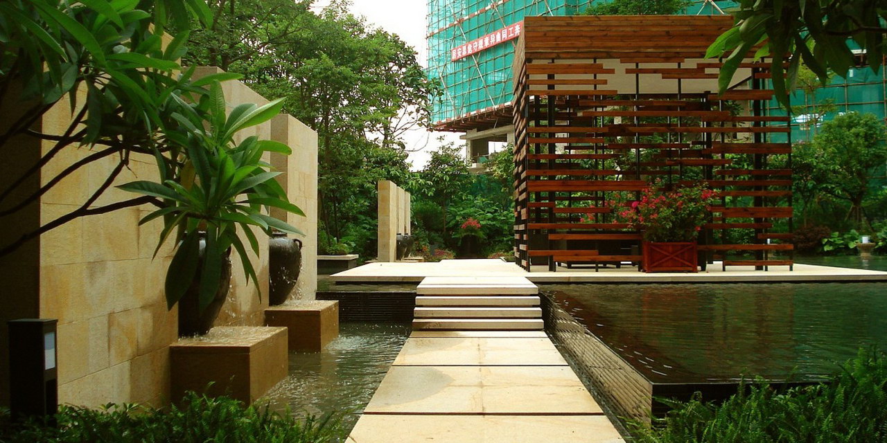 本项目有着得天独厚的地理条件,东可望山,南可观水,周边的群山形成了弯曲的等高线,而项目北侧的五期则是规则的充满秩序感的现代景观,与南侧的自然山水形成了强烈的对比。本期项目将作为由规则到自然的过渡空间及联系的纽带,经过分析我们决定师法自然,将近处的山体自然等高线延续到小区内部空间,如同山体的余脉,两者就此紧密联系。开阔的镜面水景将视线透过建筑间距向山体打开,诠释现代中式的山水意境。漂浮在镜面水的唐诗、酒杯意向的喷泉、简洁现代的亭子,隐隐的透出“曲水流觞、把酒言欢”的诗意空间。结合中国山水的曲径通幽,使人工味浓郁的现代建筑隐没于植物组团间。竹子的大量运用,给项目注入一股文人气息,而对于芦苇的选用,则又给人一种回归自然的野趣,我们希望本次设计给人一种亲切、怀旧、自然、放松的全新感受。